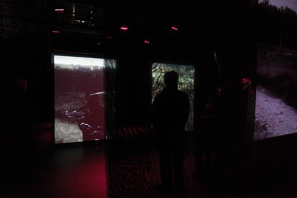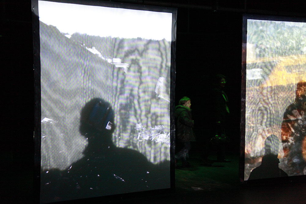Le dessin réagence des plans dans un espace avec écrans multiples, systèmes lumineux varichrome et varilite, et une variété de dispositifs de son immersif. Le stylet, la tablette graphique et le son activent la relation avec les milieux qui informent l’opération de transformation du déchet.