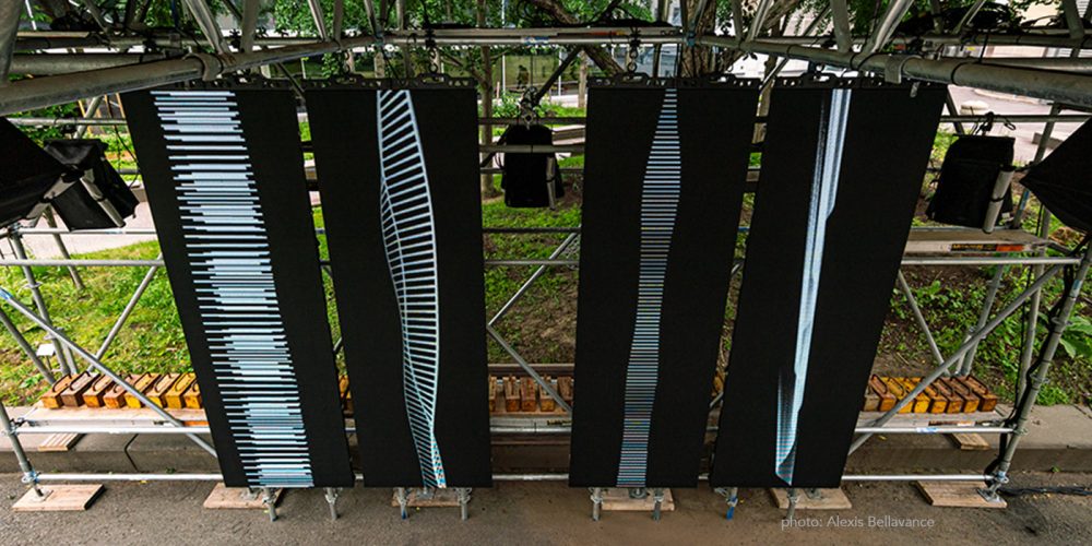 MÉDIANE lance cet été une micro-installation qui circulera avec une équipe à bicyclette dans les quartiers avoisinants du Cœur des sciences de l’UQAM. Cette œuvre a pour but de présenter la version mobile de l’installation Orée des bois, de saisir les données météorologiques locales et d’interagir avec les publics.