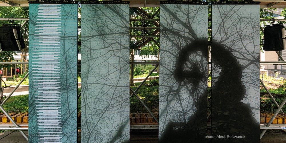 MÉDIANE, the Canada Research Chair in Arts, Ecotechnologies of Practice and Climate Change is led by Gisèle Trudel of UQAM’s École des arts visuels et médiatiques who is also a research member of Hexagram. Trudel and teams of students and professionals are actively working to create a dialogue between scientific data collection on forest dynamics, technological arts and encounters with the publics, to foster the circulation of ideas and creative actions in changing climates.